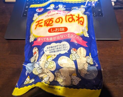 今日、この年末年始に沖縄に行ってきた学生から、 天使のはね という不思議なチップスのお土産をもらいました! この天使のはねのキャッチフレーズは、 【食べても音が出ないチップス!!】 です。 音が出ないチップス?!?! いったいどんなチップスなんだ?…