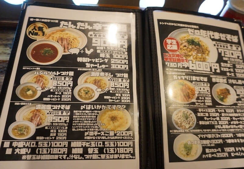 たんたん辛つけ麺にするか、濃厚煮干醤油そばにするか…。