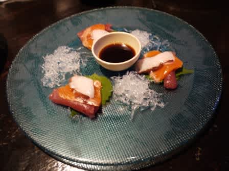 ・3種のマリネわさび醤油(サーモン・タコ・マグロ)